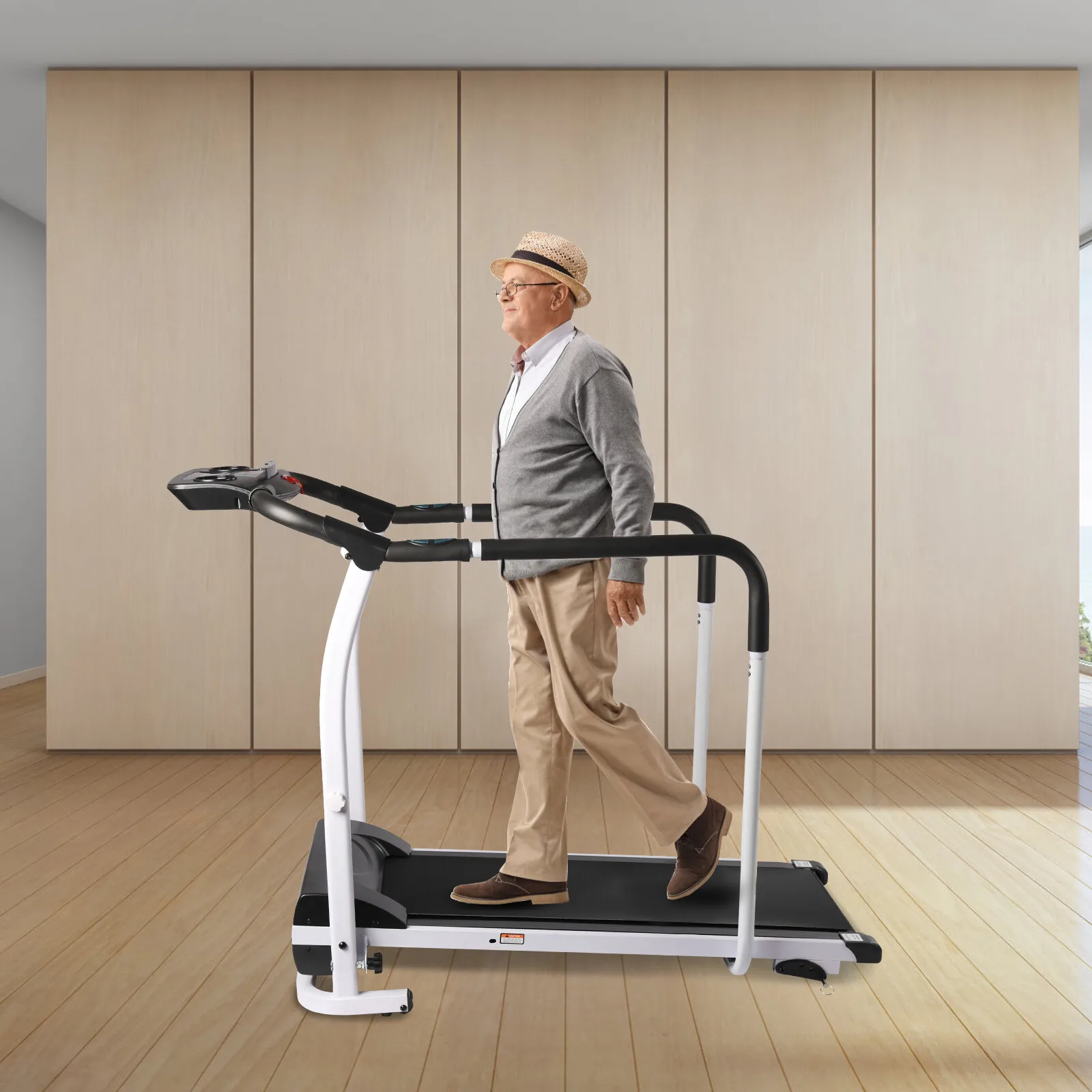 12-Speed-Gears Recovery Fitness Walking Treadmill 0.5-6km/H with Full Length Handrails & Heart Rate Sensor