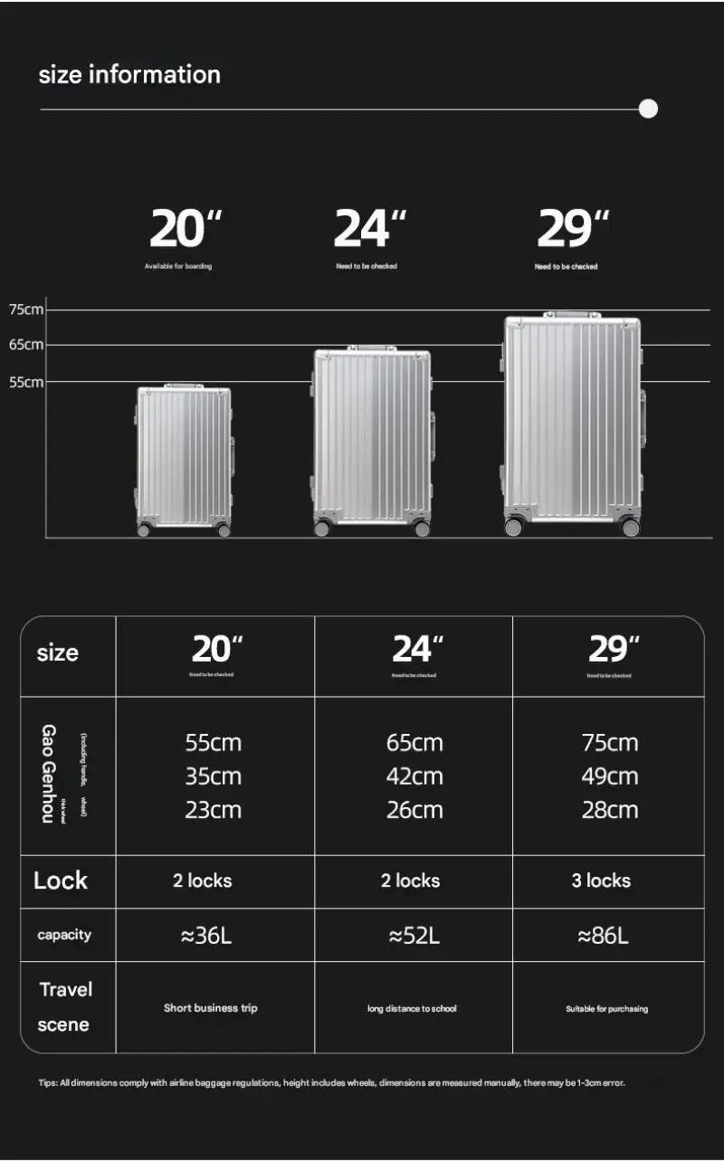 20 Inch Aluminum Rolling Trolley Case Cabin Suitcase Spinner Wheels USB Charging Travel Luggage With TSA Lock For Men Women 2025