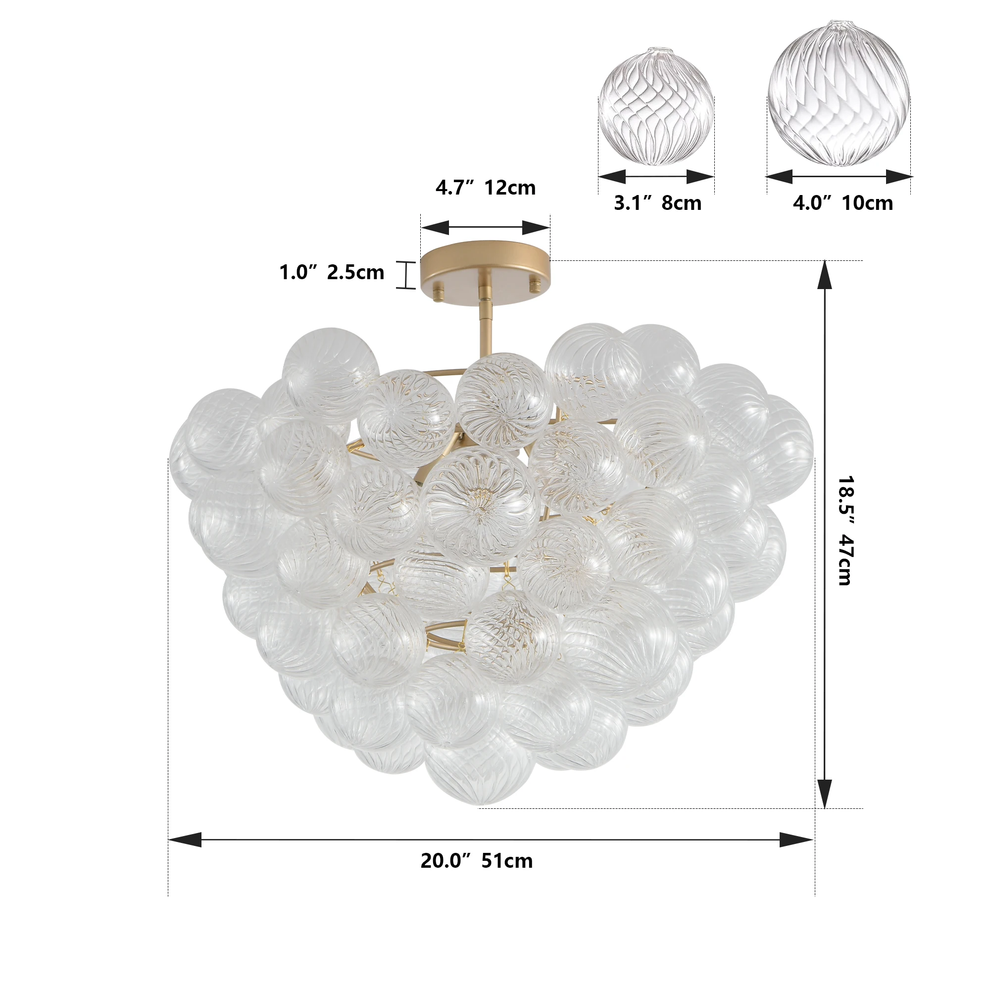 20.1-inch Gold Ceiling Pendant Light Chandelier with Threaded Clear Glass Globe Shade – Ideal for Living Room, Dining Room, Kitchen (No Bulbs)