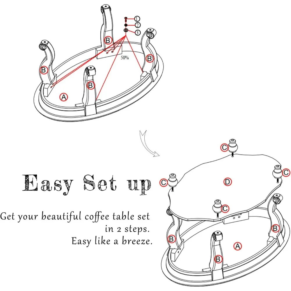 • Elegant Oval Coffee Table for Living Room: this retro french style center table features elegant curved line and lowkey color which add warmth and peace to your living room.fits with diverse colors and styles. it is a perfect addition to your room.