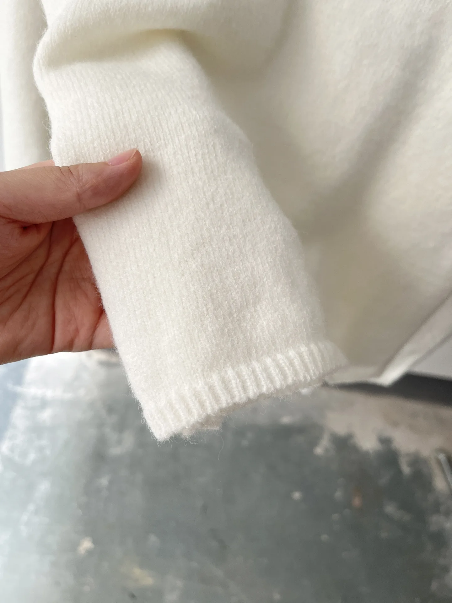 Women's clothing loose multi-color base with soft waxy wool blend round neck long-sleeved knitted sweater 16A